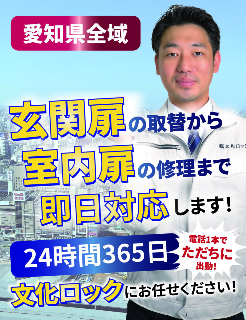 文化ロックは名古屋市を拠点に、愛知県全域で窓や扉のトラブルに迅速に対応しています。