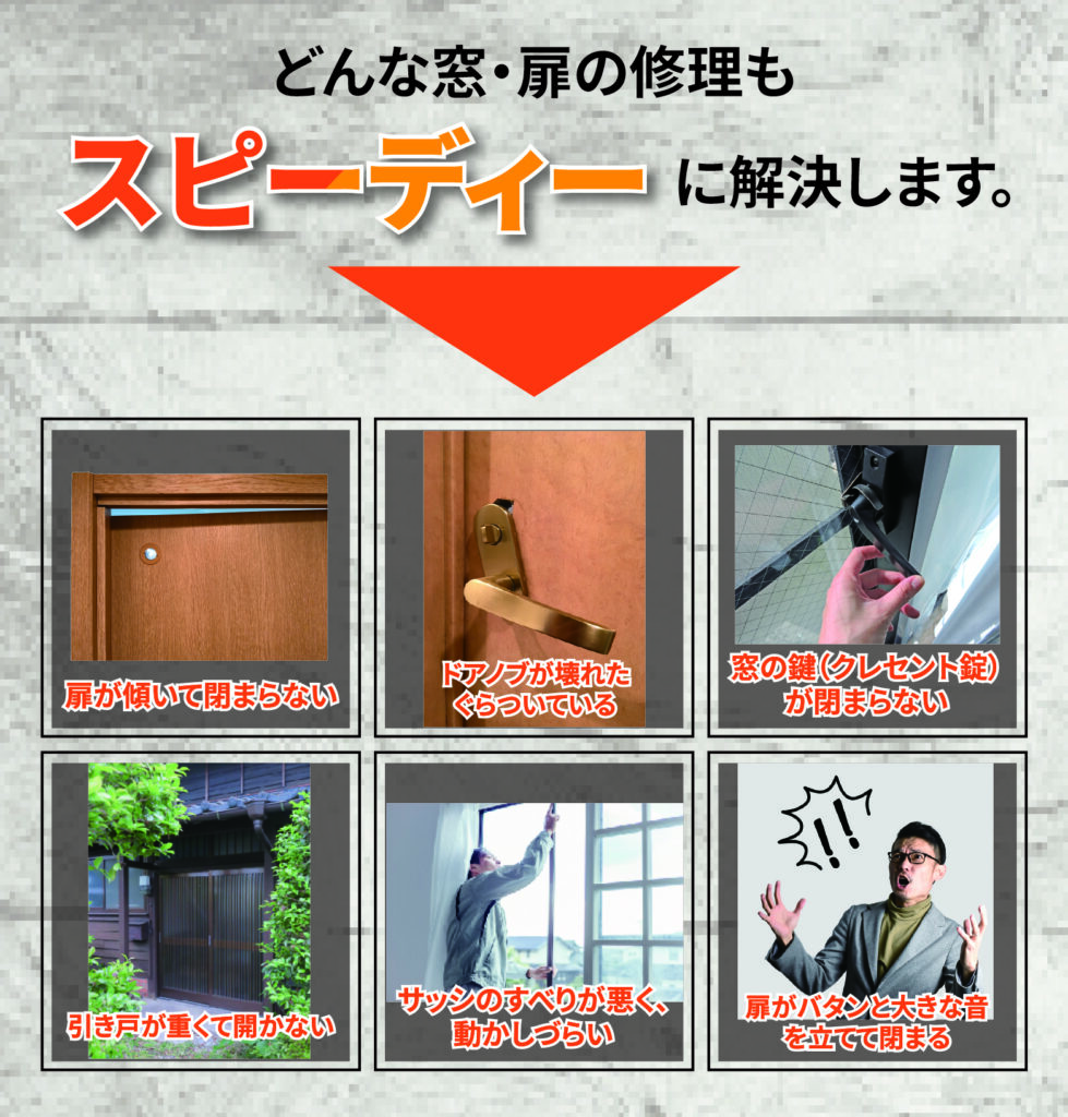 窓・扉のトラブル、お電話1本で今すぐ行きます!
